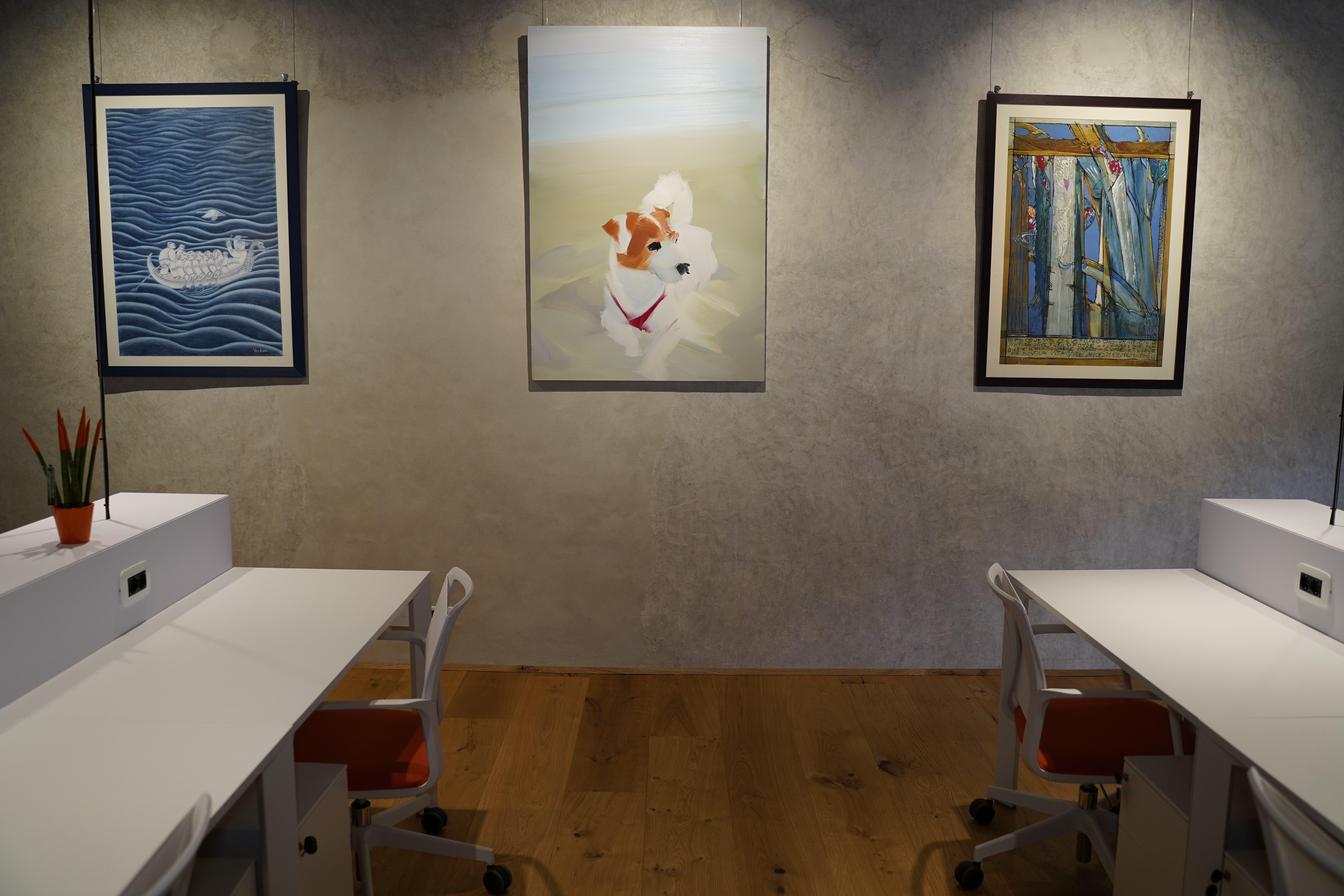 Lo spazio, al primo piano dello storico Palazzo a Prato, è suddiviso in un lungo salone open space che ospita 12 postazioni di lavoro. Ai lati, si trovano la “Sala delle Icone” sala riunioni con un ampio tavolo a ferro di cavallo e la possibilità di fare riunioni in video collegamento e “Sala Paoli” sala riunioni di dimensioni più ridotte per riunioni o incontri più riservati.